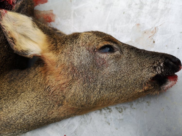 As we made our way down the hillside, Kris carried out the gralloch or, as some people call it, ‘field dress’. The purpose of the gralloch is to remove the entrails in order to reduce the temperature of the carcass so that the meat does not spoil or become contaminated. It is here that you check for signs of disease in the animal and I’m glad to say my little Roe Doe had been living a good life.