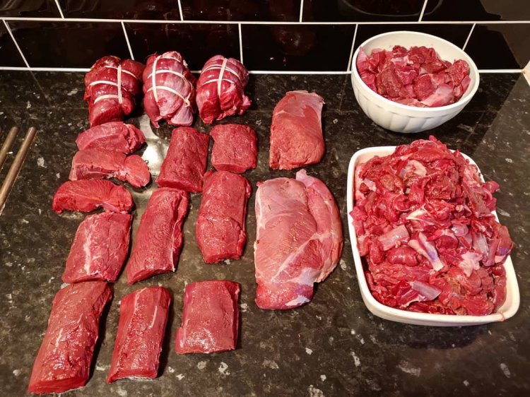 As I made the journey home I was eager to tell my wife, my parents…anyone who would listen but the only person who shared my excitement was my brother. I hung the carcass in my mates garage, ready for butchering. Normally the carcass would hang for a few days but with the weather being abnormally warm for February, I skinned it and broke the carcass down into the forequarters, saddle and hindquarters.